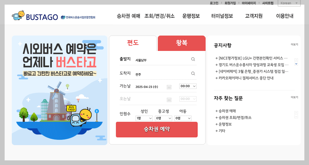 - 공식 예매 사이트(버스 예매 플랫폼) 이용